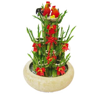 金籃三層開運竹-桌上盆栽(編號D-000034)