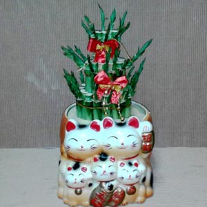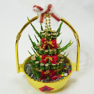 金籃三層開運竹-桌上盆栽(編號D-000034)